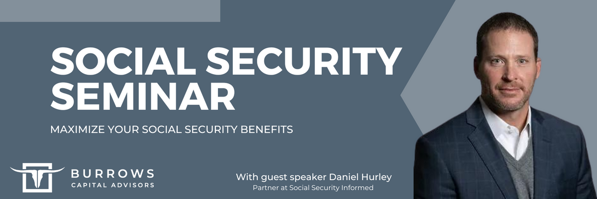 Join Burrows Capital Advisors for an informative Social Security Seminar on Wednesday, October 16th. We are excited to welcome our special guest, Daniel Hurley, Partner at Social Security Informed, who will share valuable insights on maximizing your Social Security benefits. Don't miss this opportunity to gain expert advice and get your questions answered.